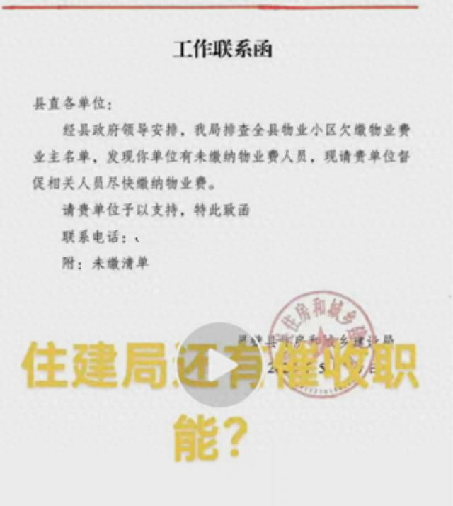 住建部门发函,向县直单位工作人员催缴物业费