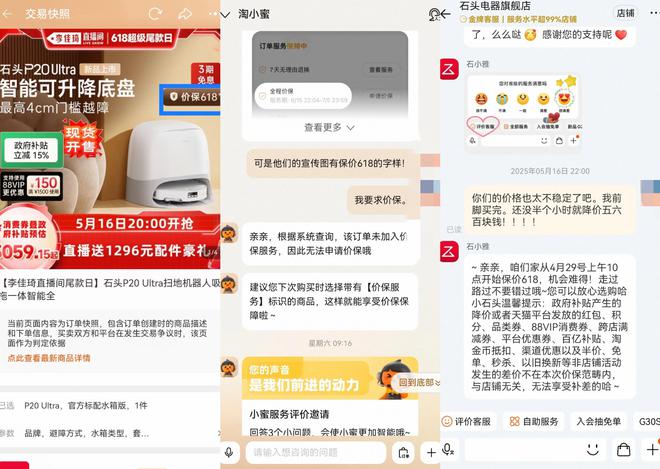 另一位消费者杨女士也告诉红星资本局,5月16日晚,她花费1099元在李佳琦直播间购买上述店铺的石头P20 Ultra扫地机器人(官方标配+上下水版本),该商品目前在使用国补后约3510元。