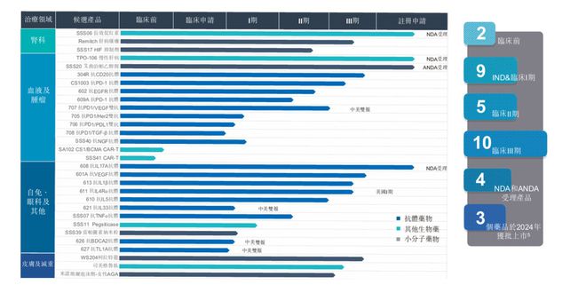对内加码自研。据财报,三生制药研发管线已拥有30项在研产品,包含血液/肿瘤科13项,自身免疫及眼科11项,肾科3项,皮肤及减重领域3项。这次BD交易的“主角”SSGJ-707就是其中的重要管线。