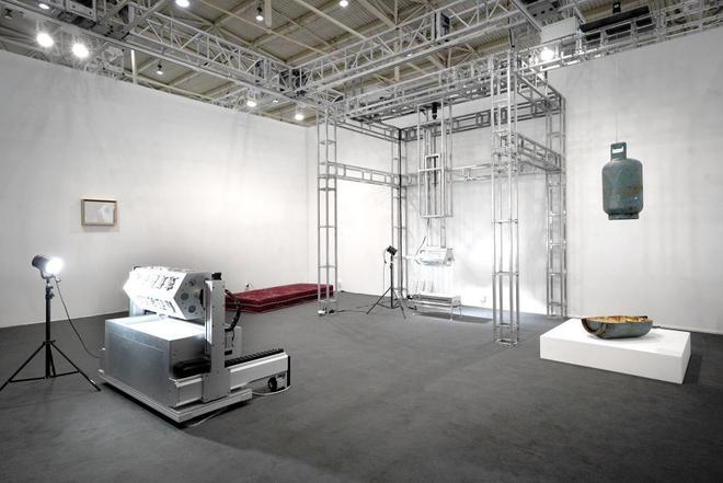 空白空间在本届艺博会上,呈现了日本艺术家毛利悠子(Yoko Mohri)“Decomposition”雕塑系列的最新在地创作。毛利在这件装置作品中选用了于北京当地淘到的古董物件——这一做法与马塞尔·杜尚在最后一件作品中的思路遥相呼应:他特地在拱门搭建中使用了西班牙卡达凯斯的当地砖石。