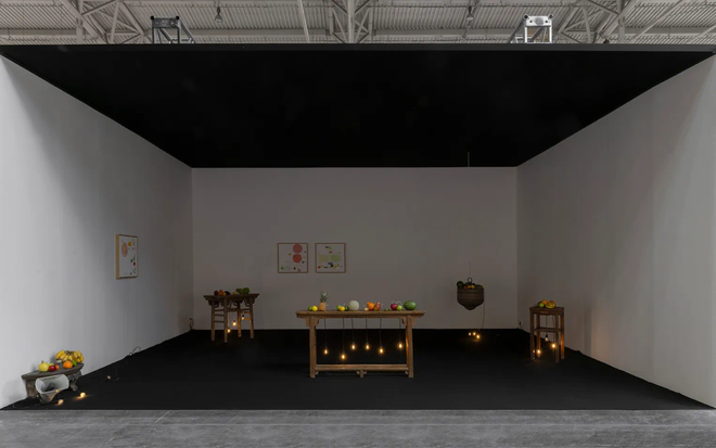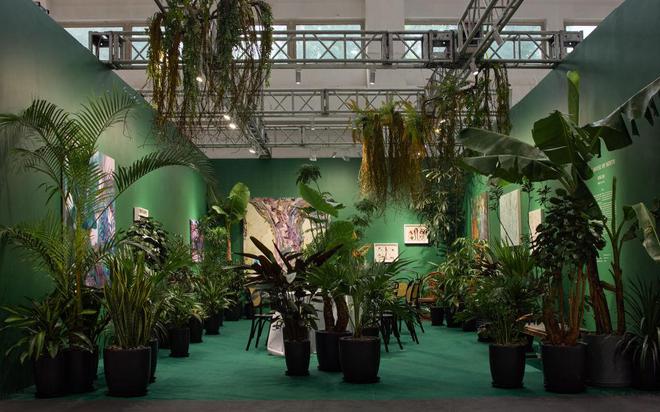 19个在现场展开的“特别艺术项目”,展示艺术在固有形态和产业逻辑之外蕴含的更多能量与可能。演员朱珠作为本届北京当代艺博会的“艺术主语人”,策划了项目“欢乐之家”(House of Mirth)在北京当代艺博会的分支。作为策展人的她,把十年前在仰光一次难忘的跨年体验,通过绘画、装置、雕塑和热带植物重现于艺博会的现场,立意把日常浸没于陌生感和数字化的人们在此重新唤起肆意、落寞、欢乐、期待这些充满生命力的情绪。谈及自己的新身份,朱珠表示希望艺术能成为这个5月人们诉说北京的主语,“在北京当代感受世界艺术,共享北京时间。”