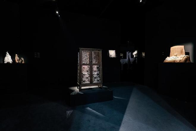 今年,黄渤携自己新创的艺术工作室“夕多夕艺术中心”首次参展。两件新作《界·媤》与《界·染》在样式上均取形明式柜,保留其方正、对称的结构与侧角收分工艺,在视觉焦点处引入透明材料与蕾丝织物,使传统万字纹与西方蕾丝纹样重叠互动,凸显出跨文化的张力。