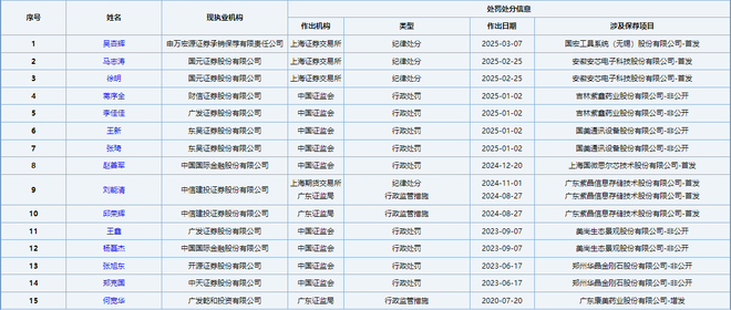 8名保代遭“资格罚”:归入暂停业务类名单,涉及6家券商