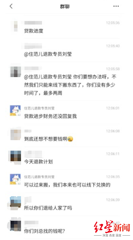 在此背景下,不少消费者对于住范儿此次出现退款难问题表示“很意外”。红星资本局在一个住范儿组建的退费答疑群中注意到,一位名为刘莹的退款专员对公司的困境做出过解释。其称,住范儿的退款难问题与过去半年相关补贴政策的出现、商家合作政策的变化、业务模式的调整都有关。