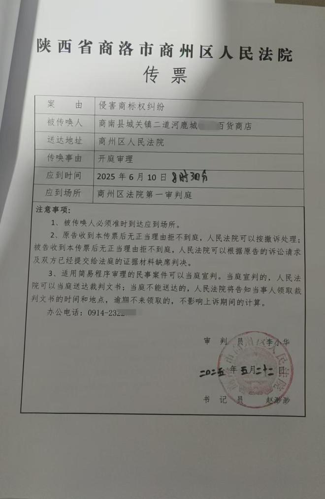 田女士介绍,5月下旬,她突然接到了来自商洛市商州区人民法院的传票,让他们去应诉一桩侵权案件,“我们被广州宝洁公司起诉了。”田女士说,她看了相关案件材料才了解到,2023年的时候,她家小店曾售卖过舒肤佳香皂、海飞丝洗发水等商品,当时商品均系在县城一个批发店进的货。而维权人宝洁公司正是2023年6月到他们店里实地购买到了两种商品取了证,“当时我们根本不知道他们来取证了,不料对方却在时隔两年后起诉了。”