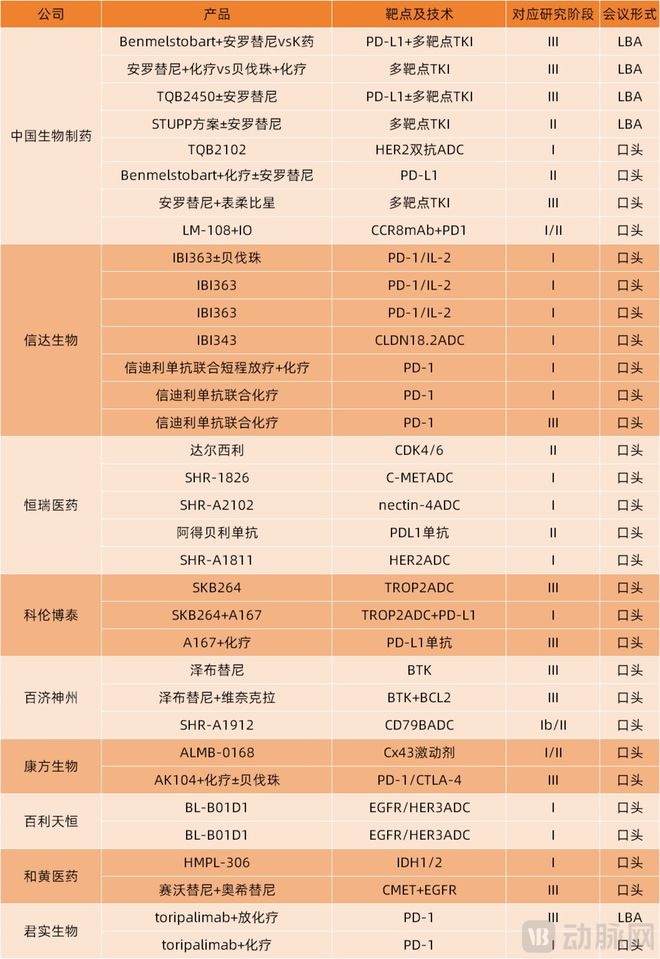 部分入选ASCO的中国研究及相关企业、创新药
