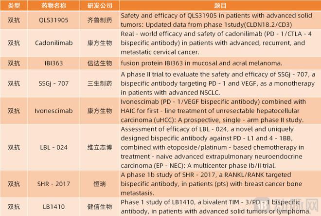 部分入选ASCO 2025的国产双抗研究
