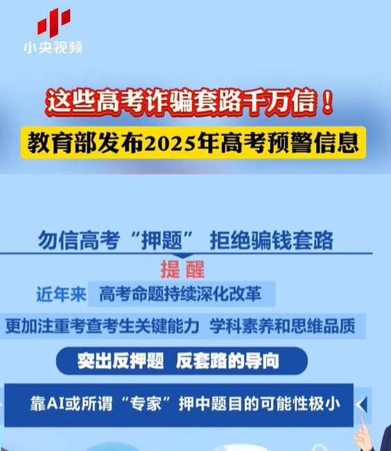 近期,教育部发布的2025年高考预警信息中,就直接提及误信高考押题影响备考。
