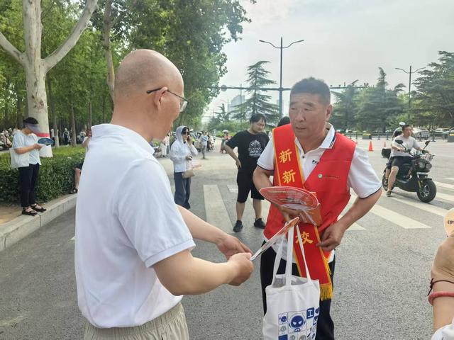 在郑州新一中考点,聚集着许多来助考的爱心企业。为了让更多等待的家长感受到社会关爱,新交通驾培的员工们离开自己的帐篷,拎上成袋子的团扇、矿泉水,给家长们送去难得的清凉。在郑州第二十四中学考点,新交通驾培的工作人员不仅贴身为家长们送清凉,还和城管队员一起维护路口的交通秩序。上午9点以后,随着考生们陆续步入考场,不少家长趁着空闲咨询孩子利用暑期考驾照的事,助考的师傅们都会耐心地给家长解答。