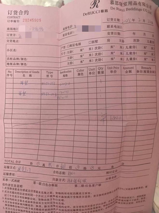 据这位卖场负责人介绍,该店铺也欠着卖场各种费用,并从慕思工厂得知今年4月1日起厂家就不再授权该店铺经营慕思品牌。“我们大致统计了一下,4月份仍有3人在该店铺下单,其余还有20人左右是在4月1日前付了钱但店铺迟迟没有发货。其中有几位顾客的货物已经发货,但因店铺未结算物流费被扣留。”该负责人称,目前卖场在积极协助这些顾客维权。