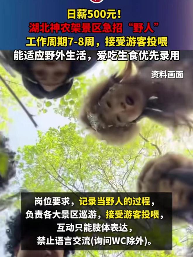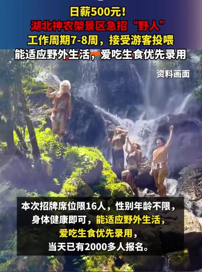 神农架景区日薪500元招“野人”,不分年龄性别,详情曝出