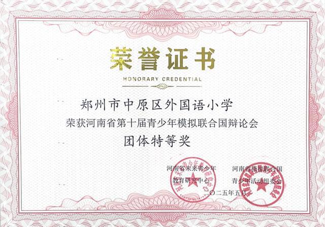 郑州中原区外国语小学连续第五次夺得省“模联”特等奖