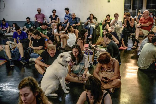 当地时间2025年6月14日,以色列特拉维夫,民众进入公共地下设施避难。