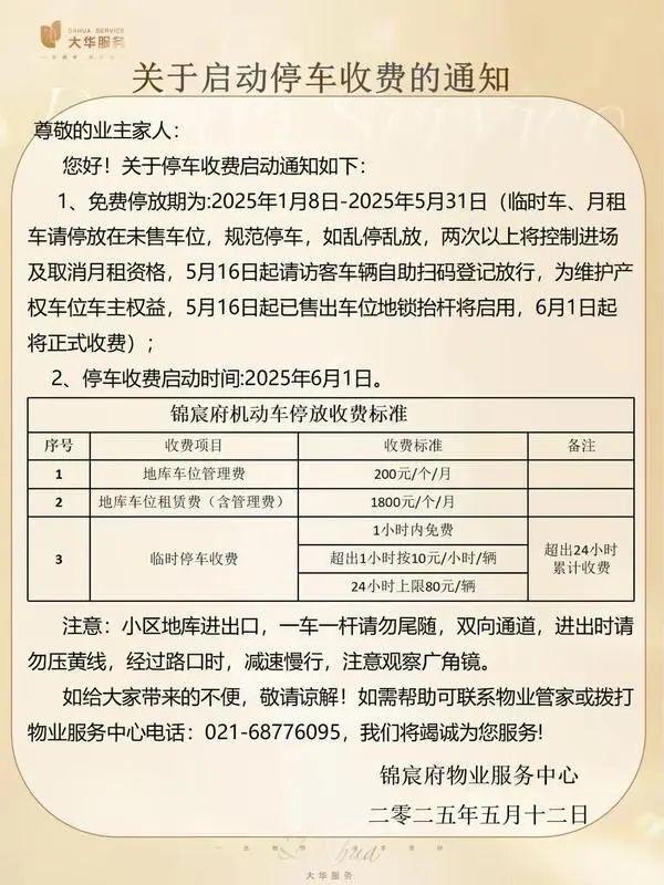 地下车库收费的通知