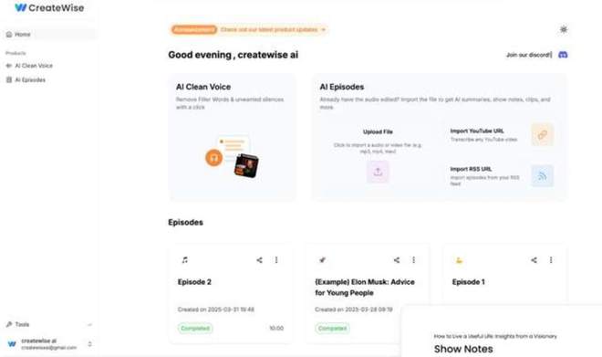 Sophie:CreateWise是一款我参与内测的AI软件。你只要一键上传音轨,软件就能直接输出完整剪辑后的音频,甚至能提供“哪些地方需要剪辑”的决策建议,以及利用AI模仿声音拟合结构,使语句更清晰,并对修改语句进行高亮显示,方便用户对比前后效果。我试用后向开发团队提出,你需要给我逐句剪辑的空间,因为有的剪辑是我喜欢的,有的剪辑不是我要的。他们现在已经提升这个功能的优先级并上线了。