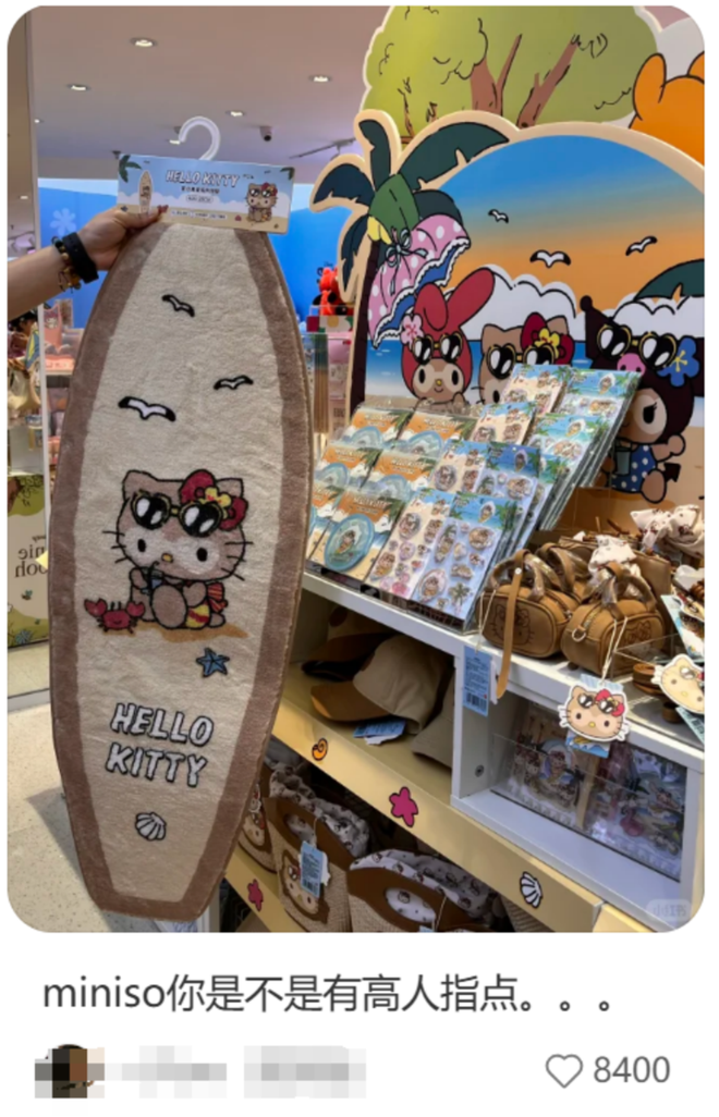 名创优品在挑选联名IP的合作上眼光一直老辣独道,就连其官号也曾发帖“你可能不认识我,但你一点见过我的联名”。近期在夏日时节与黑皮HelloKitty联名的产品再次出圈,甚至被网友调侃“有高人指点”。