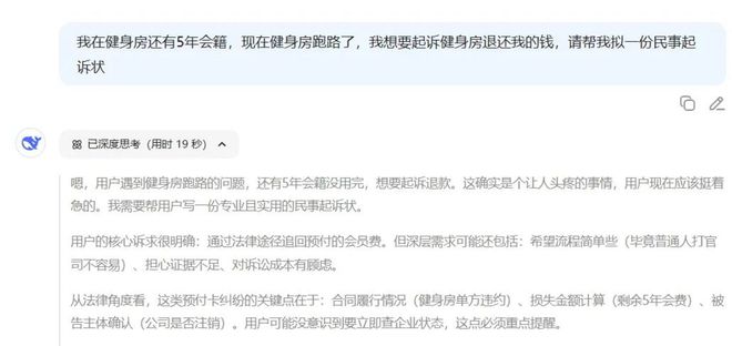 接着就卡在了那里,我没怎么思考,就打开了 AI,问它:“请帮我拟定一份民事起诉状”