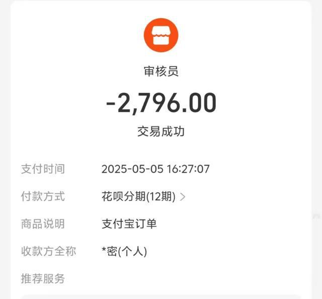 李女士的花呗付款记录显示,她于2025年5月5日下午4时许,向个人账户转账了2796元,购买了一款名为“聪明榜”的AI智能学习机。