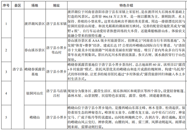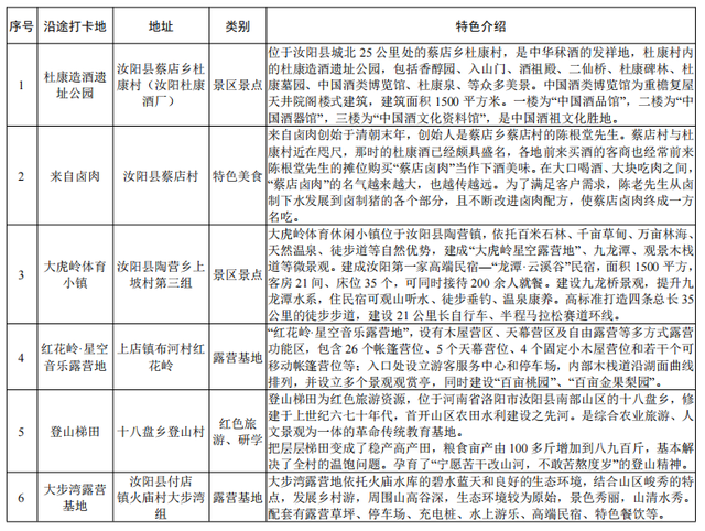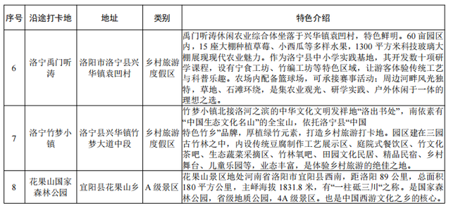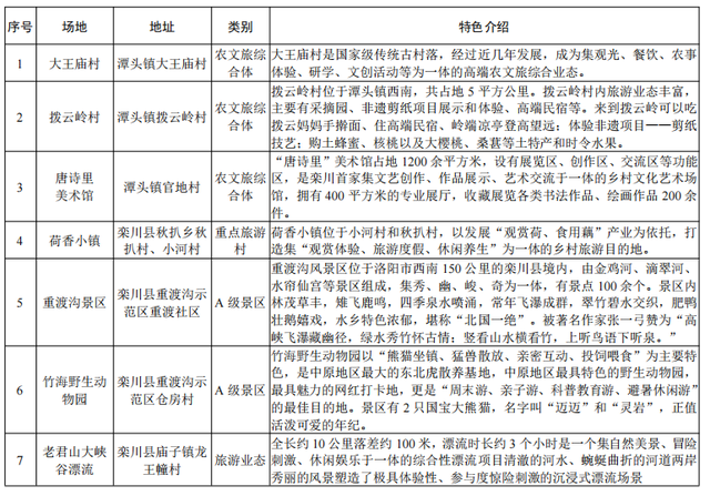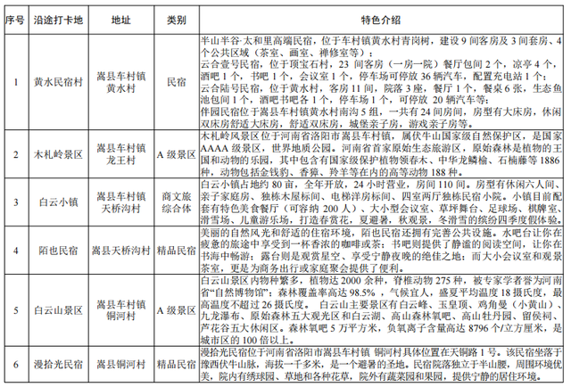 亮点及特色:杜康造酒遗址公园—来自卤肉—大虎岭体育小镇—登山村(红色教育)—大步露营基地—龙隐景区—西泰山—黄水民宿村—木札岭景区—白云小镇—陌也民宿—白云山景区—漫拾光民宿