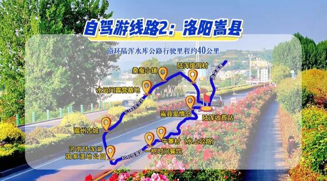线路路线:洛阳市区—洛栾高速—陆浑收费站—环湖公路