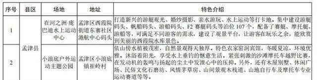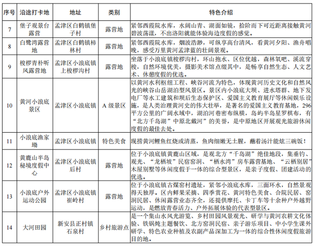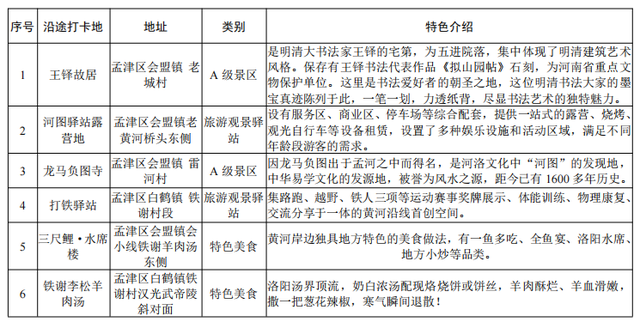 亮点及特色:王铎故居—龙马负图寺 —打铁驿站— 三尺鲤·水席楼—铁谢李松羊肉汤—白鹭湾露地—梭椤青朴听风露营地—黄河小浪底景区—小浪底渔家坳—黄鹿山半岛秘境度假中心—小浪底户外运动公园—鹰嘴山露营基地—大河田园
