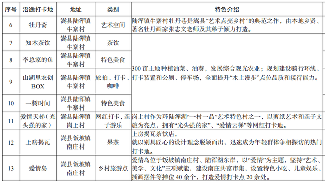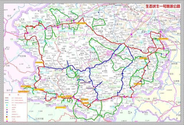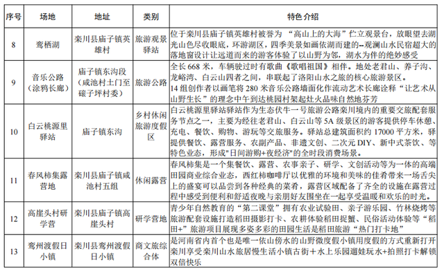 亮点及特色:大王庙村—拨云岭村—唐诗里美术馆—荷香小镇—重渡沟景区—竹海野生动物园—鸾栖湖—音乐公路—白云桃源里驿站—春风柿集露营地—高崖头村研学营
