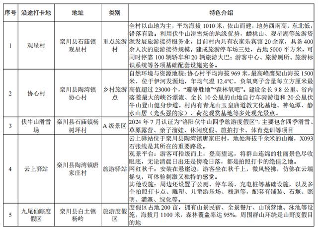 亮点及特色:观星村—协心村—伏牛山滑雪场—云上驿站—九尾仙踪度假区—洛宁禹门听涛—洛宁竹梦小镇—宜阳花果山国家森林公园