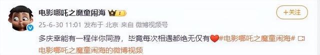 30日,电影@哪吒之魔童闹海 官博发布哪吒与敖丙人偶挥手告别视频,并配文:“多庆幸能有一程伴你同游,毕竟每次相遇都绝无仅有。”