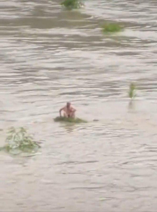 从视频里能够看见,抓住柳树的大爷后来被消防用绳索救上去了,可坐在草垛上的那位大爷,没一会儿就被洪水卷走了,直到今天上午,搜救队还在下游找着,但没有找到。