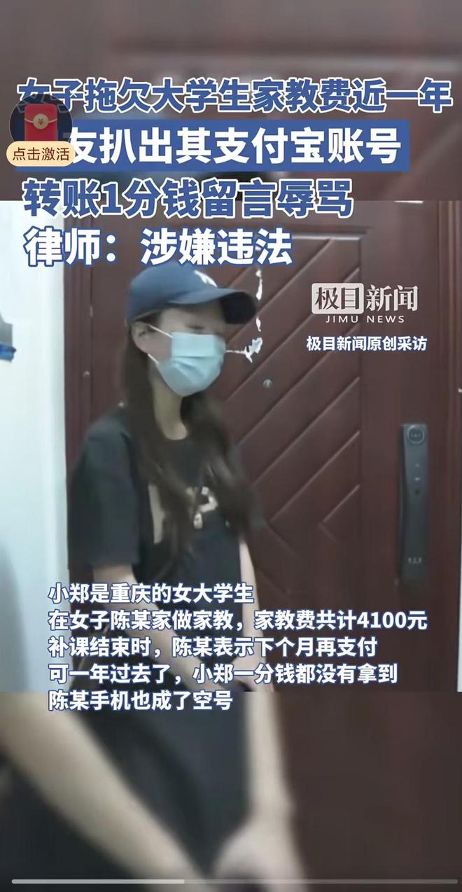 这事得从去年暑假说起。小郑经人介绍给陈女士的女儿补课,讲好17次课41小时结4100元。小郑的家境很差,父亲身体不好,属于贫困女生。为了省钱,她每回出门都算着账:坐公交来回4块,够买两顿早饭。干脆咬咬牙走路,从学校到学生家单程六、七公里,夏天晒得胳膊脱皮,冬天冻得手指发僵。邻居后来算过,她这一年补课走的路,都够从重庆走到成都了。补完课那天,陈女士说“手头紧,下个月给”,小郑没多想就信了。哪知道这一等,电话从“暂时无法接通”变成空号,微信对话框停留在去年冬天那句“阿姨,钱能先结吗?”