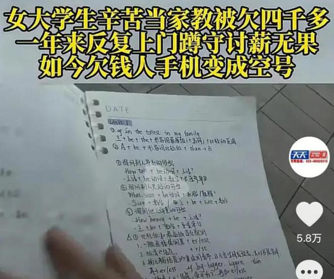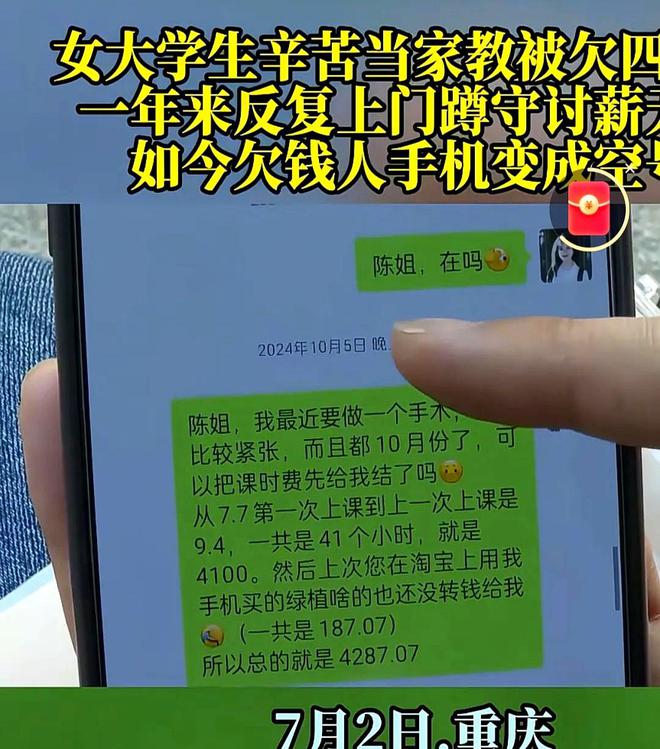 重庆的夏天热得像个蒸笼,去年7月,当同龄人躲在空调房里刷手机时,女大学生小郑却背着沉甸甸的备课资料,在滚烫的马路上一走就是三个小时。这个懂事的姑娘为了攒学费,接下了给陈女士孩子补课的活儿,谁能想到,这看似普通的家教工作,后来会演变成一场惊动全网的追债大戏。