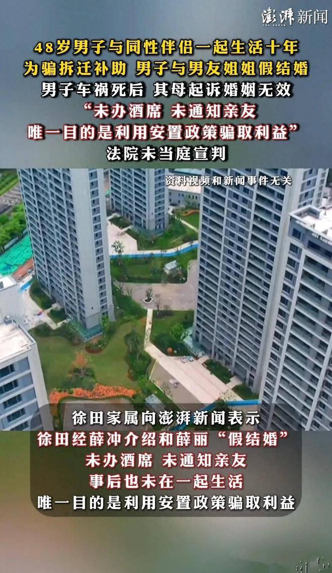 说起来,这类为了拆迁补偿搞虚假婚姻的事儿不算新鲜。前几年就有新闻曝出过,有人找陌生人假结婚,结果补偿款到手后闹得不可开交,最后不仅钱没捞着,还因“诈骗”被判了刑。徐某这事儿特殊在,他找的是伴侣的亲戚,本以为“知根知底”更稳妥,却没料到自己突然离世,让这场算计成了烫手山芋。
