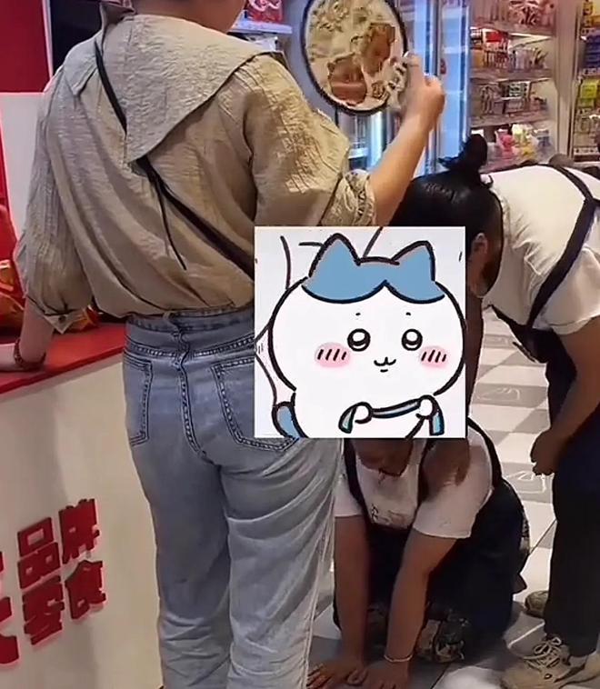 事情需要从当晚7点多说起。当时店里正排着队,收银员看后面有位顾客抱着几打啤酒,想着先结完账能让对方早点放下重物,就临时调整了结账顺序。没成想前面的顾客不乐意了,觉得自己排队在先,店员的做法是“看人下菜碟”。双方争执几句后,顾客突然提高了嗓门:“你必须给我道歉!”就在周围人没反应过来时,年轻的收银员突然弯下膝盖,以最卑微的姿势完成了这场道歉。