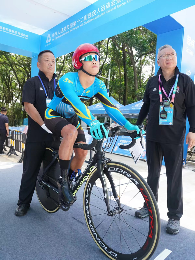 首次参加全国残疾人自行车比赛的19岁小将陈虎,为河南队取得开门红,获得男子C2级场地1公里计时赛金牌,该枚金牌也是河南代表团参加全国第十二届残疾人运动会暨第九届特殊奥林匹克运动会首枚金牌。