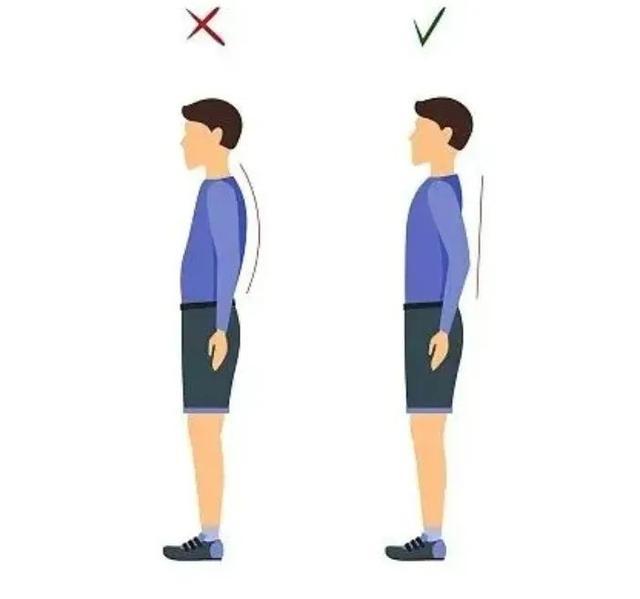 真正标准的站姿,应该像一棵直直的松树,从侧面看过去,耳垂、肩峰、骨盆、膝关节和足踝在一条直线上。