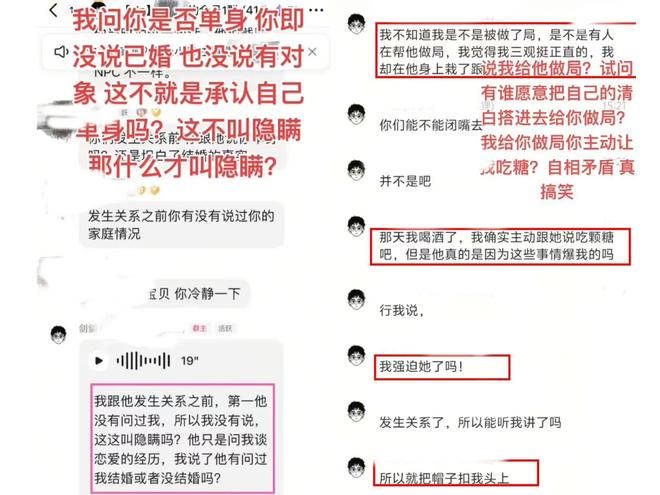 九觅把聊天记录甩到粉丝群,哭着说自己问过蓝狐狸是不是单身,他没说有老婆,这不就是默认单身?蓝狐狸却在直播里硬气得很:“发生关系前,她从没问过我结没结婚,只问过恋爱经历,我说有前任,这算骗吗?”他甚至还嘴硬:“结婚跟上班有啥关系?工作是工作,私下是私下,我分得清。”这话一出,评论区直接炸了锅。