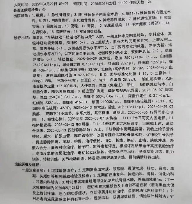 现在,治疗费用压得白女士喘不过气:每月康复治疗要5万,护工费1万,还得定制医疗支具,神经疼痛的手术费更是要三四十万。她自己已经垫了8万,可男友一家在垫付十几万后就断了头。医生说,脊髓损伤的黄金恢复期就这6个月,修复窗口期能到两年,她根本不能停治疗,可伤残鉴定得等6个月,法律程序走不了,赔偿款拿不到,只能指望张先生先垫钱,可人家连面都不露了。记者多次联系张先生,电话不接,微信也加不上,没个回应。