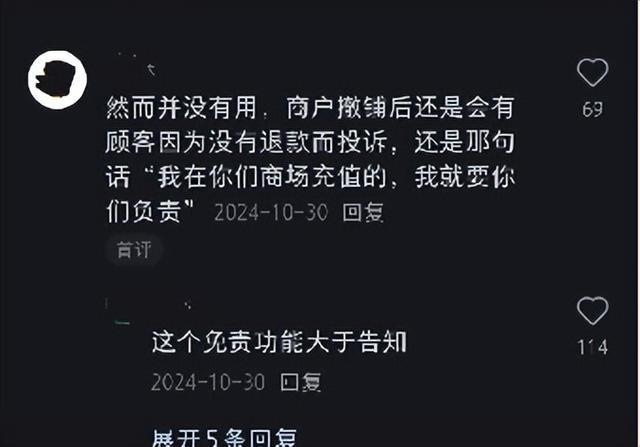 还有人认为,商场这一做法“免责意图大于告知”,“商家跑路后,总会有消费者跑去找商场。实际情况是,保证金根本不够退,而且一般都冲抵物业费了。”有网友说。