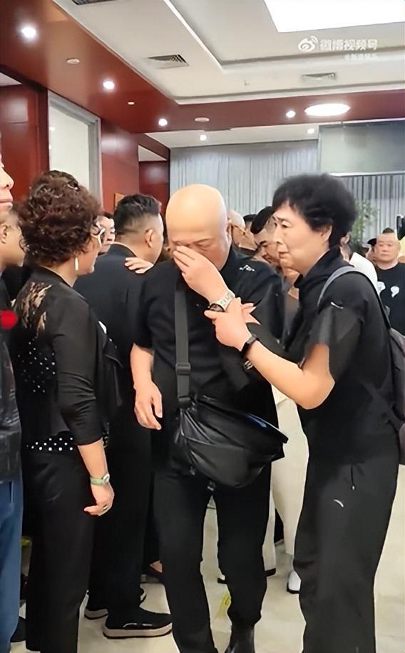 相声演员杨少华告别仪式今日举行,亲属身穿黑衣神情悲伤,儿子杨议哭到差点晕倒被抬出场馆