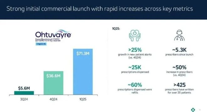 2025年一季度,Ensifentrine销售额超7100万美元,环比增长95%,处方量超2.5万张,新患者启动量环比增长超过25%,且60%的处方是续方,这表明患者对Ensifentrine的依从性和满意度较高。