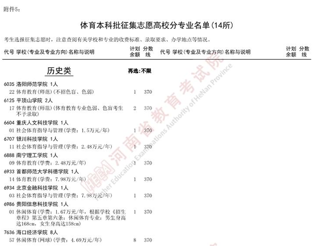 今18点截止!普通本科提前批体育本科批征集志愿名单公布!