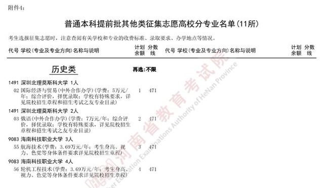 3.飞行技术专业要求考生民航招飞面试、体检、背景调查合格,高考文化成绩450分以上,英语单科成绩90分以上,在招飞系统中有1个“有效招飞申请”即可报考。航海类相关专业有身高、视力等要求。深圳北理莫斯科大学(中外合作办学)要求考生参加高校组织的综合能力测试且成绩合格,按综合评价招生模式择优录取。