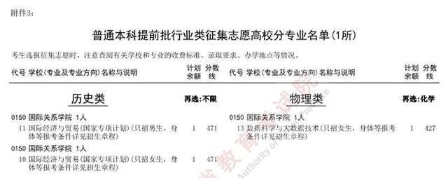 2.国际关系学院的国家专项计划专业要求须具有相应的报考资格。