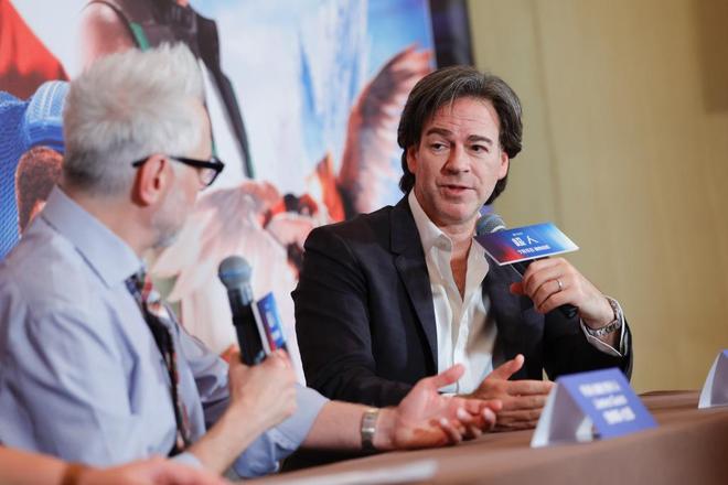 在电影《活死人黎明》(2004年)出任编剧一鸣惊人,又凭借《银河护卫队》三部曲暴得大名,摇滚乐队主唱出身的詹姆斯·古恩,在中国影迷口中被亲切地称为“滚导”。滚导和制片人皮特·萨夫兰的合作起自1998年,在好莱坞征战多年,两人结下莫逆之交。新版《超人》全球通告的最后一站,他们来到北京,共同接受了中国媒体的圆桌访谈,一起讲述了此番创作的缘起和经历。