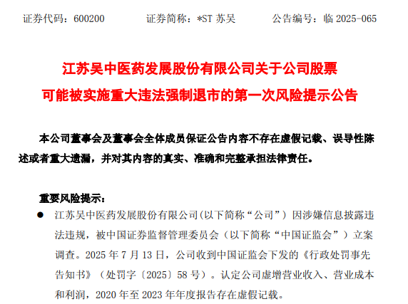 *ST苏吴连续4年财报造假,或被强制退市!董事长5月已被证监会立案