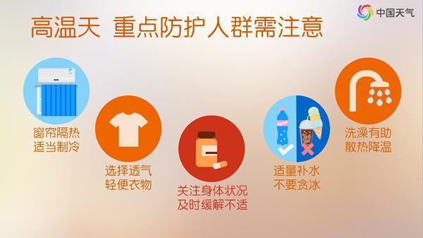 本轮高温波及范围广、部分地区高温强度大、影响时间长,西北地区东部、华北、黄淮北部等地以干热为主,黄淮南部、四川盆地到华南大部焖蒸桑拿感突出,需持续做好防暑降温措施,高温时段不要长时间在户外活动,谨防中暑。