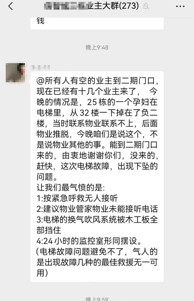 业主发帖称被困孕妇按紧急呼叫无人接听