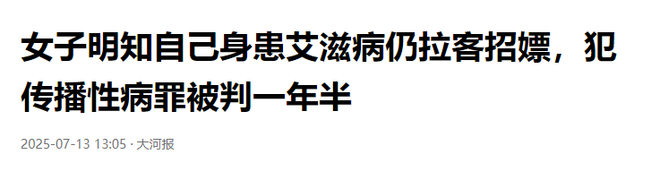女子明知自己患有艾滋病,仍然卖淫,女子仅被判刑一年半,惹争议