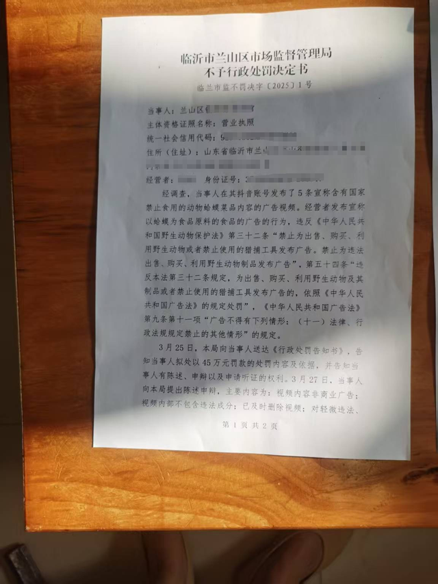 代理律师谈“餐饮店因蛤蟆汤视频被拟罚45万元”:不予处罚决定书迟到两个月,不排除后补可能性