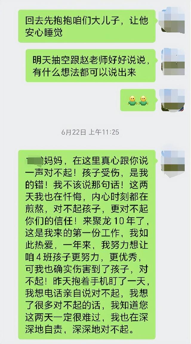 班主任的丈夫还给记者发了大量事发后其他学生家长和他爱人的聊天记录:“赵老师,您还好吗?今天开家长会才得知发生的事情,您是一位好老师,认真负责又很有爱心,很可惜少了您这么优秀的班主任。”“就是孩子想您了,说好多天没看到您,晚上还梦到您,说着说着就哭起来了。”“孩子真的很关心您,今天还在问。平时看她一副事不关己高高挂起的样子,很多家长都说您很好。赵老师您要好好的。”